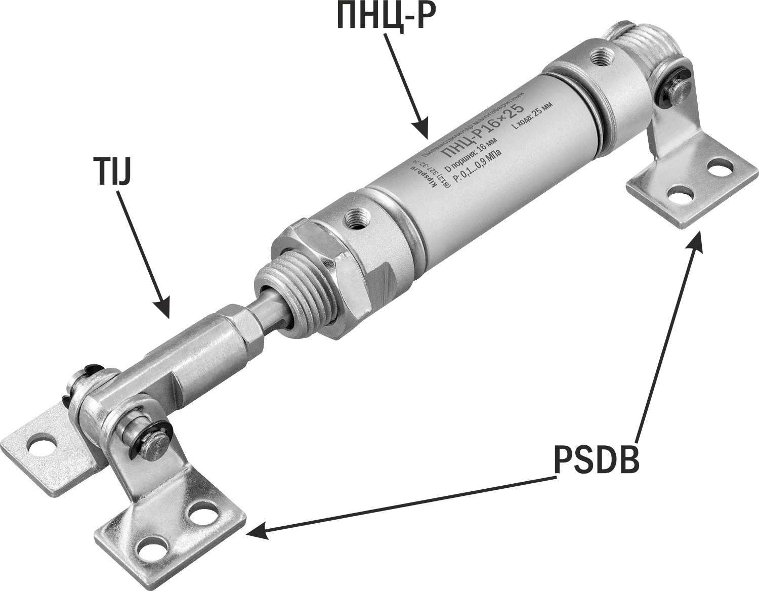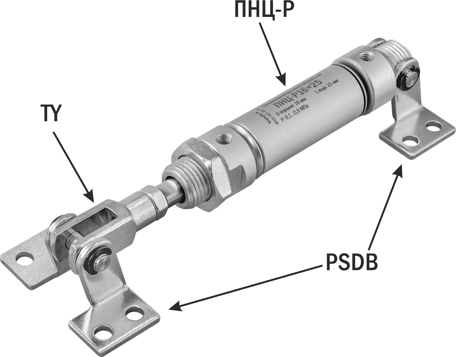 Крепежный элемент PSBD для установки и фиксации пневмоцилиндров на рабочей поверхности пневматической системы, присоединения к штоку цилиндра исполнительного механизма системы