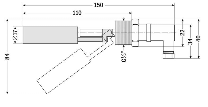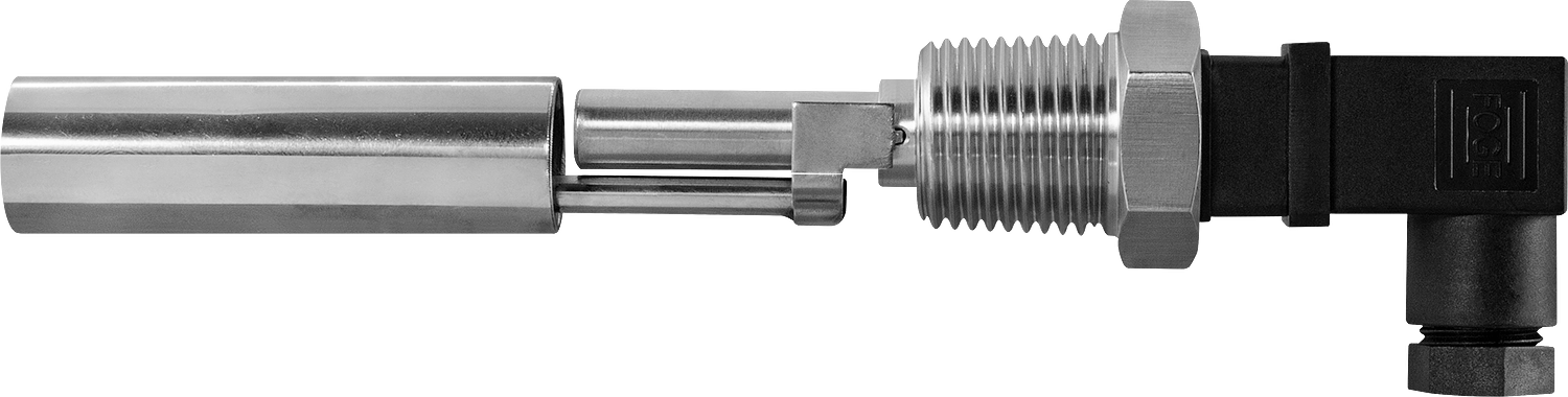 - В зависимости от способа установки датчика выходной контакт замыкается или размыкается при понижении уровня жидкости