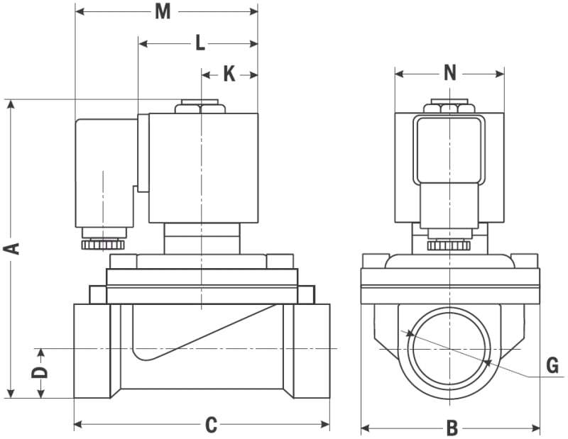 Нормально закрытый соленоидный клапан — это магнитный клапан, в котором закрытое положение сохраняется, если управляющее напряжение на его индукционную катушку не подаётся. При подаче напряжения на катушку нормально закрытый клапан открывается и пропускает через себя поток рабочей среды. При отключении управляющего напряжения этот клапан автоматически закрывается и перекрывает поток рабочей среды в трубопроводе. При обрыве провода управляющего напряжения - клапан будет закрыт. Подходит в большинстве случаев, для эксплуатации в системах водоснабжения, теплоснабжения, вентиляции и пневмоуправления. Особенно актуально применение данного типа клапана когда либо большую часть времени клапан должен быть закрыт либо когда он обязательно должен быть закрыт при отключении электропитания системы.