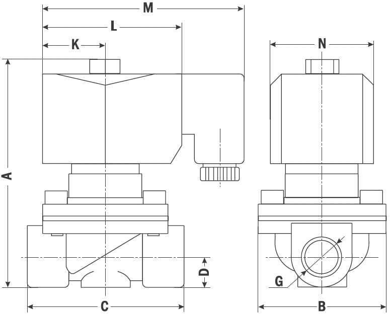 Нормально закрытый соленоидный клапан — это магнитный клапан, в котором закрытое положение сохраняется, если управляющее напряжение на его индукционную катушку не подаётся. При подаче напряжения на катушку нормально закрытый клапан открывается и пропускает через себя поток рабочей среды. При отключении управляющего напряжения этот клапан автоматически закрывается и перекрывает поток рабочей среды в трубопроводе. При обрыве провода управляющего напряжения - клапан будет закрыт. Подходит в большинстве случаев, для эксплуатации в системах водоснабжения, теплоснабжения, вентиляции и пневмоуправления. Особенно актуально применение данного типа клапана когда либо большую часть времени клапан должен быть закрыт либо когда он обязательно должен быть закрыт при отключении электропитания системы.