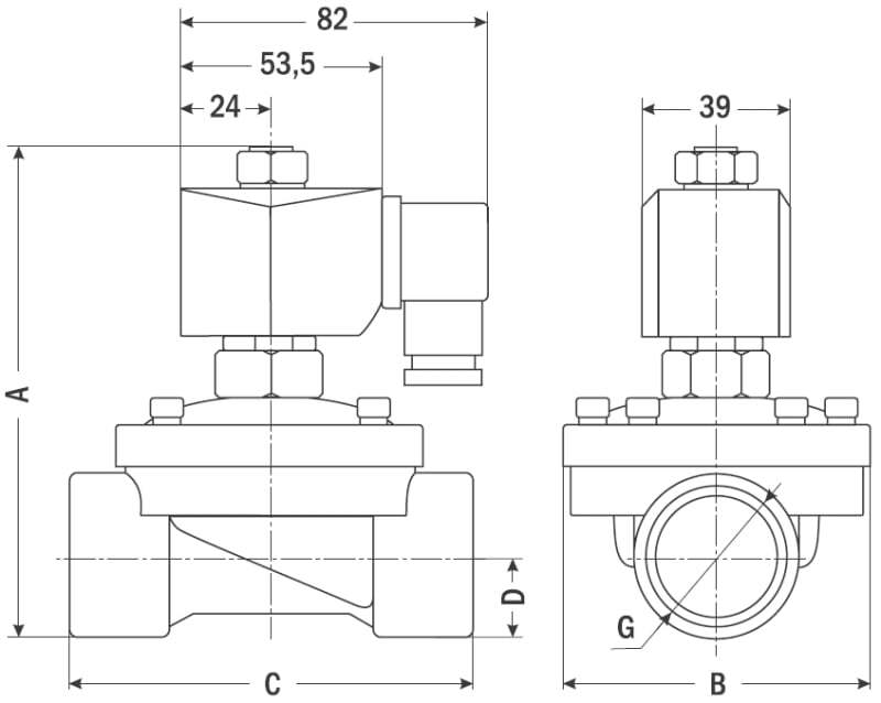 Клапан соленоидный нормально открытый прямого действия с диафрагмой AR-2W52 предназначен для управления потоком рабочей среды в трубопроводе