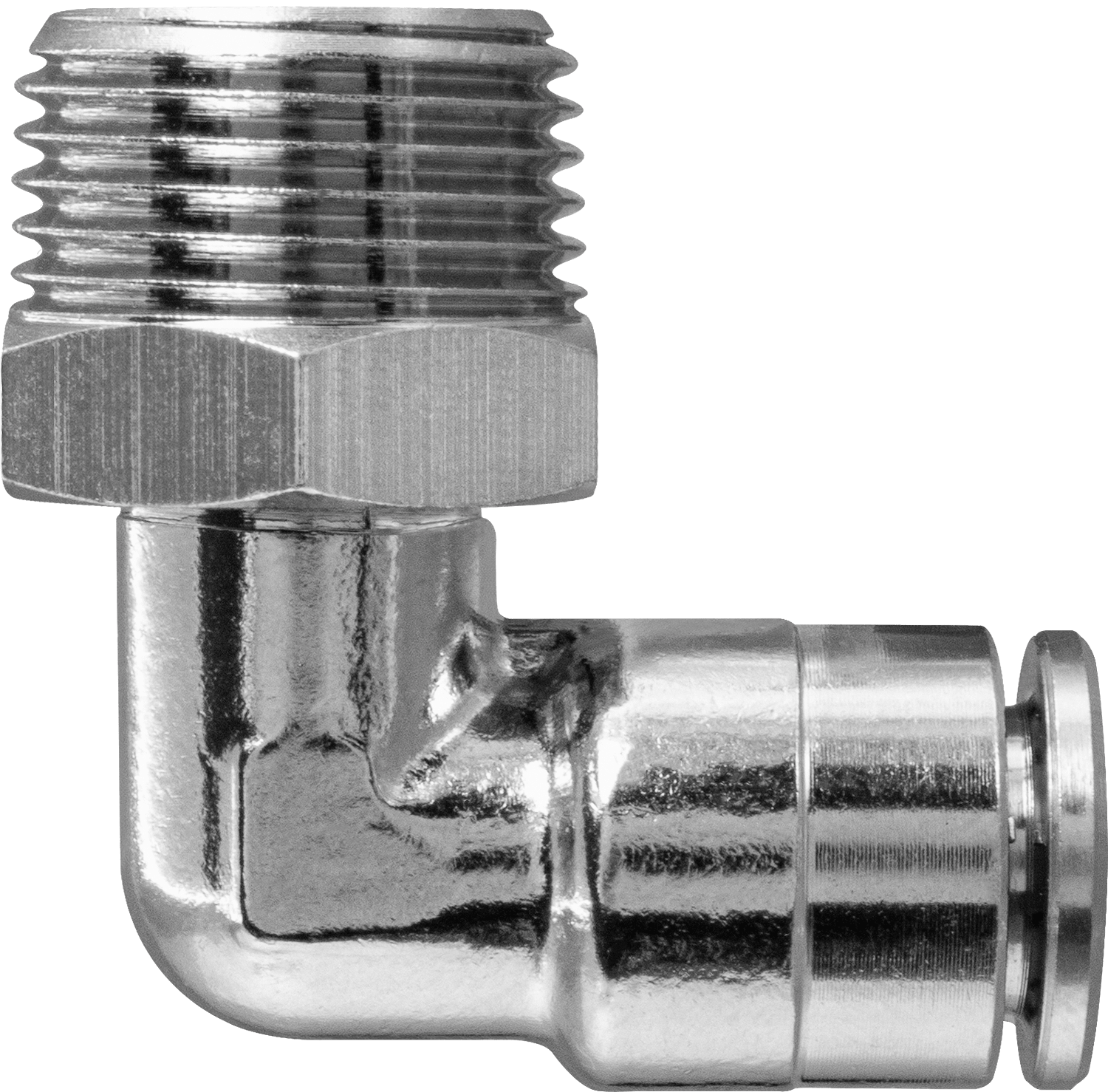 Угловой шестигранный фитинг металлический ТРНУМ предназначен для соединения различных элементов пневматических систем