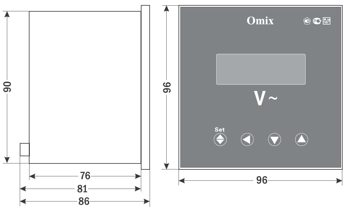 Р94: 48×96×105 мм Р77: 72×72×85 мм Р99: 96×96×86 мм |