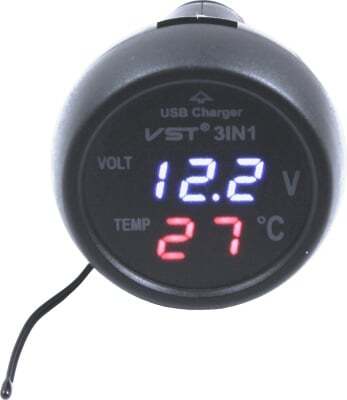 Вольтметр автомобильный VST-3 предназначен для контроля напряжения в бортовой электросети автомобиля, а также для измерения температуры в салоне