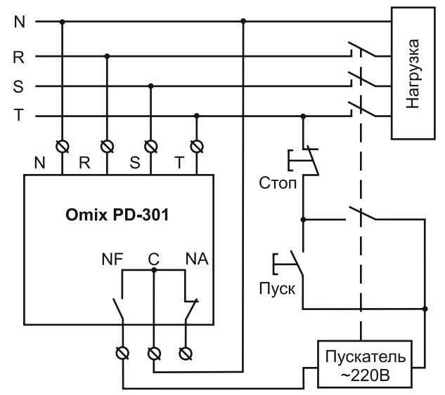 Реле контроля напряжения Omix-PD-301 предназначено для контроля трехфазного линейного напряжения в трехфазных сетях переменного тока с нейтралью, порядка чередования фаз и обрыва фазы