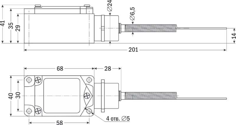 Выключатель конечный ВКУ-9169 со срабатыванием на отклонение в сторону, с пружинным штоком с утоньшениемТехнические характеристики: