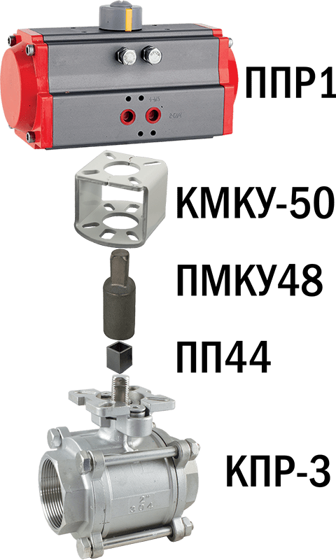 Кран шаровой с пневмоприводом КПР-3 предназначен для управления потоком рабочей среды в трубопроводе